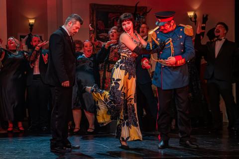 És emellett ott van Poire, a neurotikus impresszárió, pragmatikus nejével az oldalán, aki azért fohászkodik, hogy ha már egyeseknek ilyen elmebaj ez a szerelem-dolog, akkor legalább ne kellene frászban élni, előadásokat lemondani, igazodva a művésznő viharos magánéletéhez. Hogy mindeközben egy agyament Kormányzó is üldözi Sybillt, a Kormányzót meg a helyi nőegylet vezetője, az már szinte természetes. Ahogy természetesen medvében sem lesz hiány.